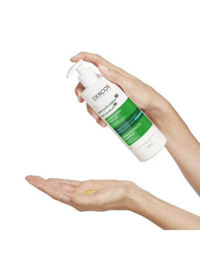 Le shampooing anti-pelliculaire pour cheveux normaux à gras Dercos élaboré par les laboratoires Vichy s’adresse aux personnes qui sont sujettes aux pellicules et aux démangeaisons du cuir chevelu. Ce shampooing traitant contribue à éliminer les pellicules visibles, qu’elles soient grasses ou sèches, et à prévenir leur réapparition. Il permet également d’atténuer les démangeaisons qui accompagnent souvent les pellicules et de réguler la production de sébum au niveau du cuir chevelu.
