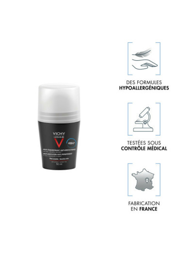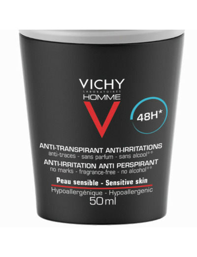 Le déodorant bille Vichy Homme est conçu pour réguler la transpiration et absorber les mauvaises odeurs pendant 48 heures. Il convient à tous les types de peaux y compris les plus sensibles grâce à sa formule sans parfum, sans alcool et sans paraben. Il respecte l’épiderme et limite les irritations. Il contient de l’aluminium chlorhydrate, un minéral chargé de contrôler le phénomène de transpiration. Il permet de resserrer les pores tout en limitant la production de sueur. Ce déodorant bille pour les hommes s’applique très simplement puisqu’il suffit de faire rouler la bille pour délivrer le produit. Sa texture est hydratante et apaisante au quotidien et procure une véritable sensation de fraîcheur sans risque de traces blanches ou jaunes sur les vêtements. Il offre une protection complète et ne laisse pas un effet collant après usage. La peau reste saine et est moins odorante.