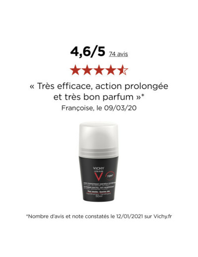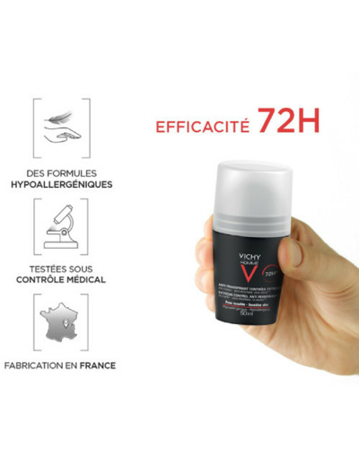 Le déodorant anti-transpirant 72 heures pour hommes de Vichy permet d’offrir une efficacité déodorante et anti-transpirante très longue durée et en toutes situations. Grâce à sa formule sans alcool et sans paraben, il garantit une tolérance optimale car il est non irritant et non sensibilisant, et peut ainsi convenir à tous les types de peaux, même les plus sensibles.