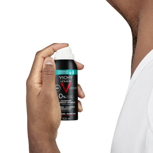 Découvrez Vichy Homme Tolérance Optimale, le 1er déodorant compressé Haute Tolérance par Vichy Homme. 48H de protection pour les peaux les plus sensibles, sans alcool, et avec seulement 5 ingrédients.Son format compressé 100ml garantit autant d'utilisation qu'un format 200ml.