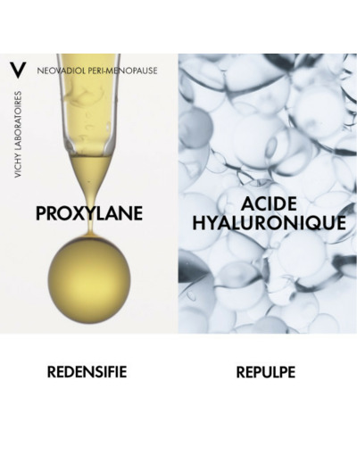 NEOVADIOL Péri-Ménopause est une crème de nuit redensifiante revitalisante qui compense les signes visibles de l’arrivée de la ménopause sur la peau. Enrichi en Proxylane, extrait de cassia, acide hyaluronique et caféine, ce soin de nuit anti-âge revitalise la peau aide à retrouver du volume et de l’éclat, pour un teint frais, une peau tonique et des traits reposés au réveil.