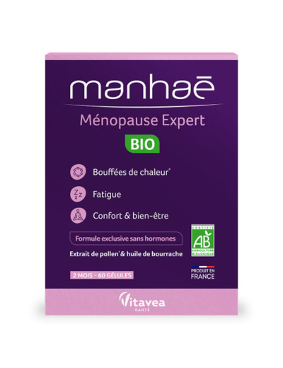 Manhaé Ménopause Expert BIO est la solution sans hormones et BIO pour accompagner les femmes en période de pré-ménopause & ménopause.