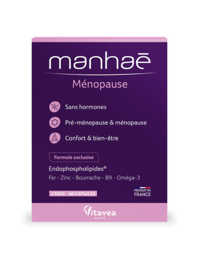 Manhaé offre une solution naturelle et sans risque à toute femme qui souhaite réduire ses bouffées de chaleur et sueurs nocturnes, retrouver son tonus et préserver son capital jeunesse en période de ménopause sans recourir aux hormones, même d’origine végétale (soja, lin, sauge…).Cette étape, marquée par des bouleversements physiques et psychologiques, a également des conséquences sur la sexualité de la femme.Manhaé préserve ainsi la féminité de chacune en contribuant à limiter la sécheresse vaginale et à une meilleure sexualité.