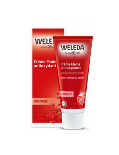 Weleda Crème Mains Régénératrice à la Grenade 50 ml, soin anti-oxydant, régénère significativement la peau, retardant ainsi les manifestations du vieillissement cutané, notamment sur les taches de vieillesse. Sa formule naturelle stimule le processus de renouvellement cellulaire et protège l'épiderme des effets des radicaux libres.La crème mains régénératrice à la grenade de la marque Weleda est un soin pour les mains qui sont particulièrement fragiles ou exposées aux éléments extérieurs agressifs comme le lavage fréquent à l’eau savonneuse, les produits ménagers ou les conditions climatiques (vent, froid, pollution). Cette crème mains stimule le renouvellement cellulaire, hydrate en profondeur et protège la peau du vieillissement cutané.