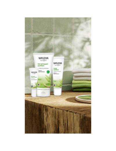 Le gel nettoyant et purifiant de Weleda est formulé pour éliminer ces imperfections. Il contient des tensioactifs doux, qui vont nettoyer la peau sans l'irriter. Il apporte de l'extrait d'écorce de saule qui va apaiser la peau, et de l'hamamélis, qui va avoir un effet astringent, c'est-à-dire qu'elle va resserrer les pores de la peau. Ses extraits de racine de réglisse est réputé pour éclaircir le teint de la peau. Enfin, le tocophérol va avoir un effet anti-oxydant.