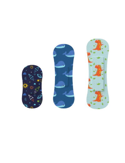 Pansements enfants à thème : odyssées spatiales, excursions à la recherche de dinosaures ou mondes sous-marins.