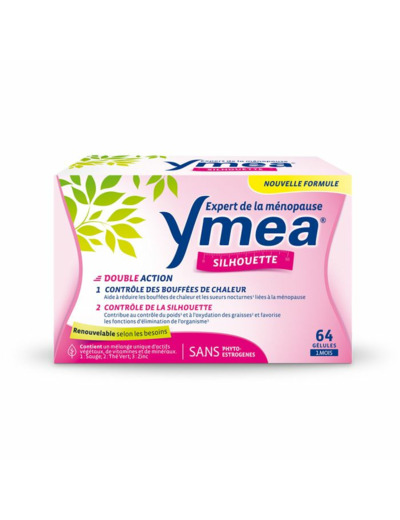YMEA MénopauseBouffée de chaleurSilhouetteActifs végétaux: actée à grappes*, piment de cayenne**, queue de cerise***Vitamines B6, B12 et D, cuivre et zincBien-être durant la ménopause*: aide à supporter les bouffées de chaleur, les sueurs nocturnes et l'irritabilité lié à la ménopauseContrôle de la silhouette: aide à contrôler le poids** et favorise les fonctions d'élimination de l'organisme***Complément alimentaire64 gélulesPoids net : à venirYmea® Silhouette est un complément alimentaire à base de plantes et de vitamines. Ymea® Silhouette répond spécifiquement aux besoins des femmes ménopausées grâce à sa double action :contrôle des bouffées de chaleur :la sauge aide à soulager les bouffées de chaleur et les sueurs nocturnes ;la vitamine B6 contribue à réguler l'activité hormonale ;la vitamine D3 contribue au maintien d'une ossature et d'une fonction musculaire normales ;le cuivre et la vitamine B12 contribuent du fonctionnement normal du système immunitaire.contrôle de la silhouette :le thé vert contribue au contrôle du poids et à l'oxydation des graisses ;le zinc contribue à la synthèse et la dégradation des glucides, des acides gras et des protéines ;le chrome contribue au maintien d'un taux de glycémie normal et aide au métabolisme normal des macronutriments.Fabriqué en France.LABORATOIRES OMEGA PHARMABP 8092321 CHATILLON CEDEXFrance