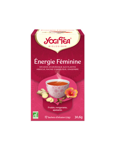 La persévérance et l'endurance sont des facultés dont certaines personnes doivent faire preuve plus que d'autres. Bonne nouvelle : vous avez en vous tout ce dont vous avez besoin. Égayée par l'hibiscus fruité, la réglisse et des feuilles de framboisier, utilisées en naturopathie pour leurs propriétés antispasmodiques en cas de troubles menstruels, YOGI TEA® Énergie Féminine stimule vos sources intérieures et vous permet de reprendre des forces.