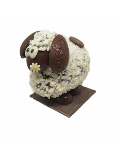 Le mouton chocolat au lait 35% avec sa laine en chocolat blanc à déguster .