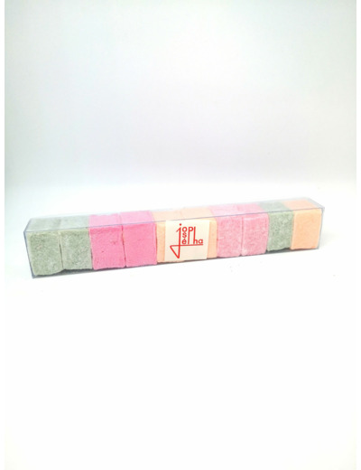 Réglette de guimauve avec un assortiment de saveurs naturelles ( Citron vert, Framboise, Fraise des bois et Passion) .