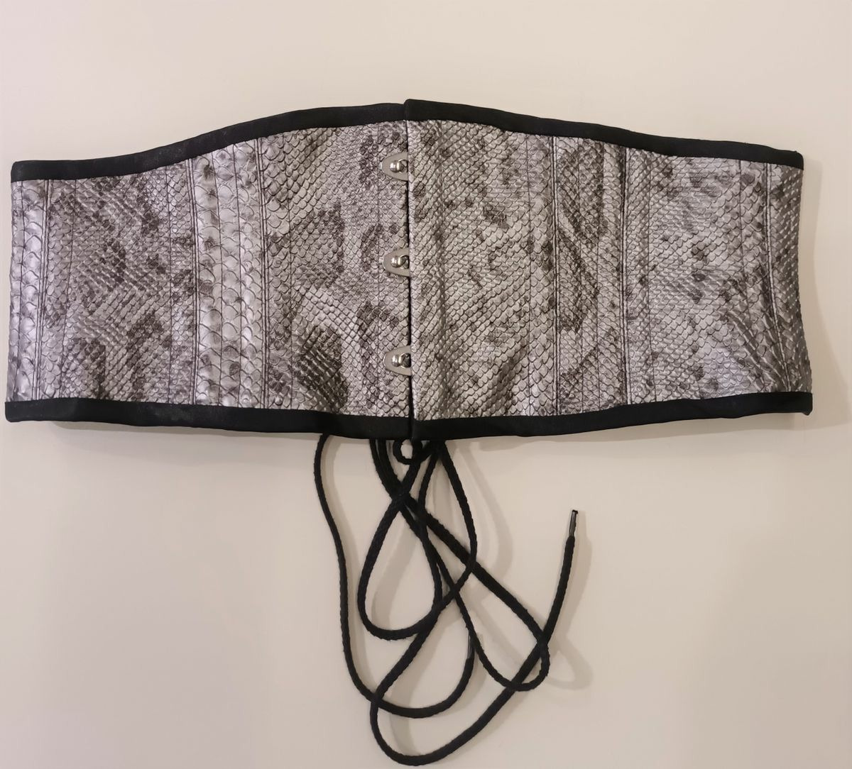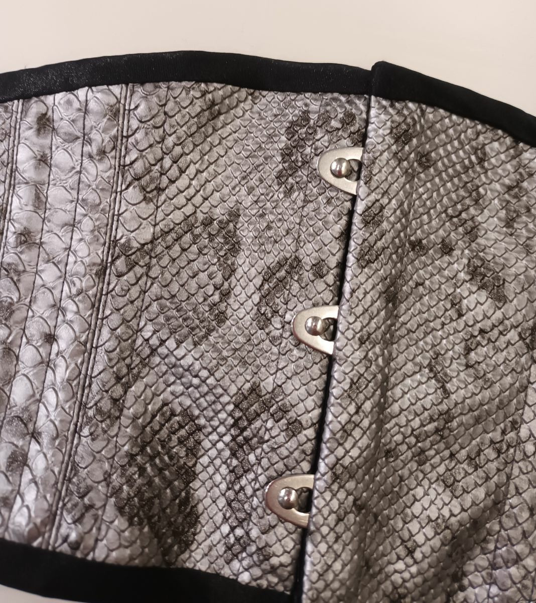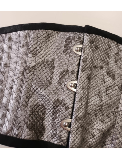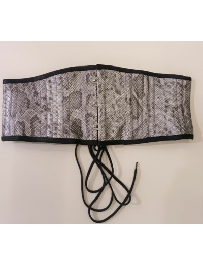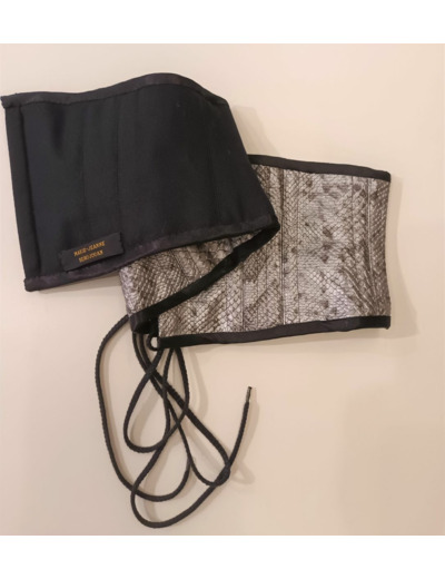 Cette Ceinture corset réversible en sky imitation serpent et coton noir est une superbe pièce de savoir-faire artisanal qui rehaussera n'importe quelle tenue. La combinaison de fausse peau de serpent et de coton noir crée un look luxueux et audacieux, parfait pour celles qui veulent faire impression. Le corset est conçu pour cintrer la taille et créer une silhouette en sablier, tout en offrant soutien et structure. Fabriqué à la main avec une attention aux détails, ce corset est une pièce unique et intemporelle qui sera précieuse pour les années à venir. Que vous le portiez comme outfit de mode ou pour une occasion spéciale, ce corset fera certainement tourner les têtes et recevra des compliments.
