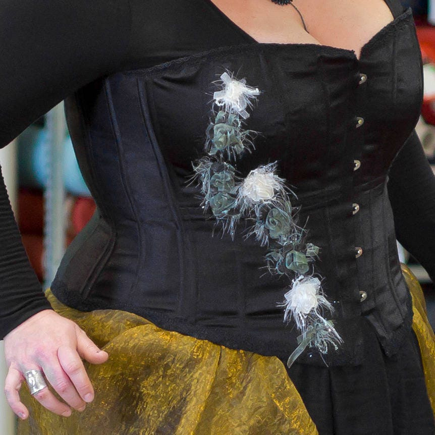 Découvrez le corset satin et fleurs, une magnifique pièce entièrement faite à la main en France par notre talentueuse corsetière artisanale. Chaque corset est unique et confectionné avec amour, en utilisant des matériaux de la plus haute qualité. Ce corset est doté de baleines en acier spiralé pour un maintien optimal et d'un intérieur noir élégant pour un look raffiné.