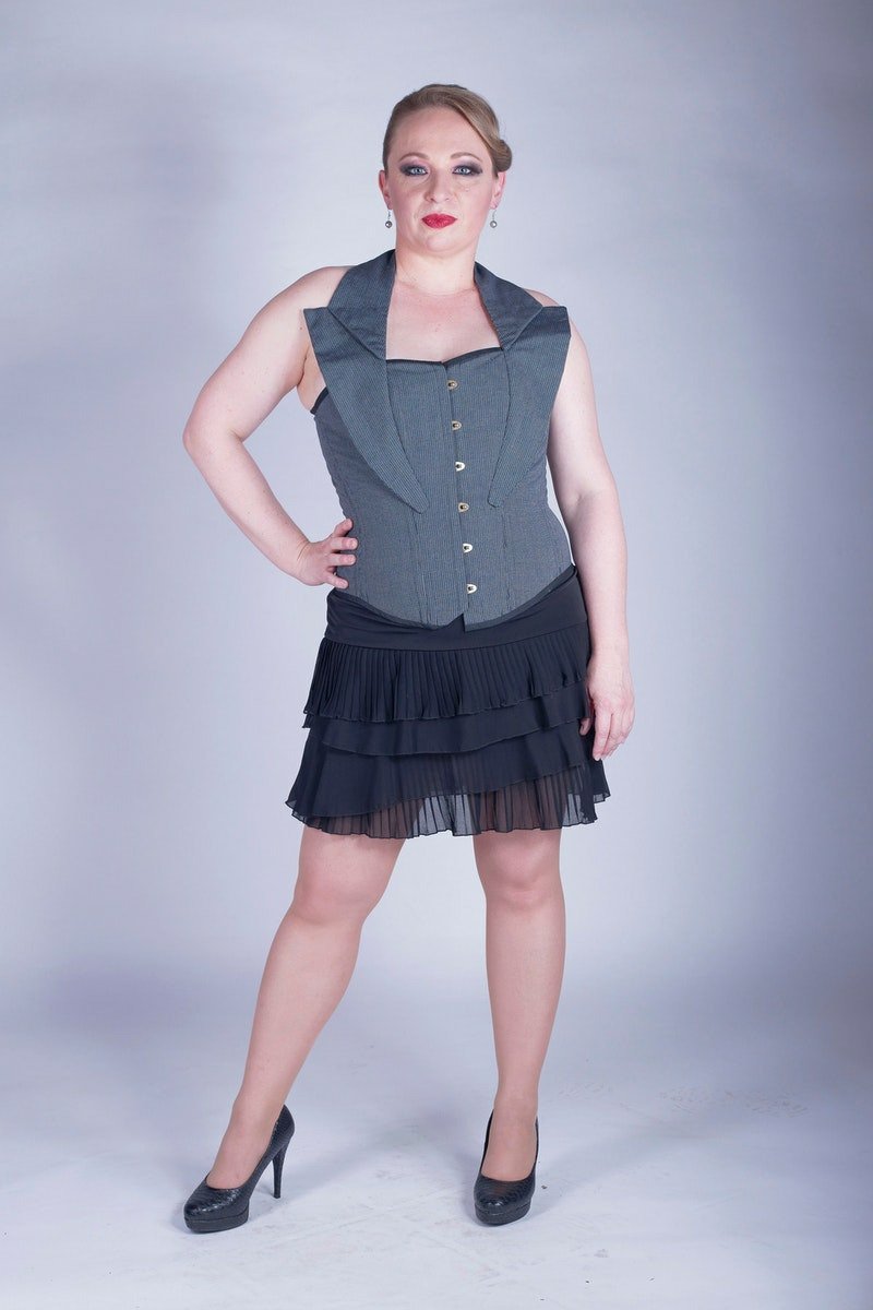 Les baleines en acier spiralé offrent un soutien et un confort optimal à votre silhouette, tandis que l'intérieur gris ajoute une touche de sophistication. Ce corset à col est le choix idéal pour celles qui recherchent un vêtement élégant, unique et fabriqué avec amour en France. Commandez dès maintenant et apportez une touche d'artisanat d'art à votre style!