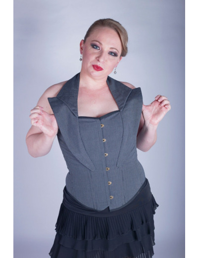 Découvrez notre Corset à col, une pièce unique faite à la main en France par notre talentueuse artisan d'art corsetière. Chaque corset est confectionné avec soin et passion, ce qui en fait une pièce de qualité exceptionnelle. Réversible, vous pourrez porter ce corset dans deux styles différents pour plus de polyvalence et de créativité dans votre garde-robe.
