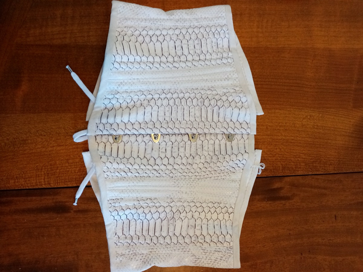 Présentation de notre Serre-taille en sky blanc impression serpent, fabriqué à la main par notre artisane corsetière d'art qualifié en France. Chaque pièce est méticuleusement conçue et confectionnée pour offrir à la fois soutien et style. La belle couleur blanche combinée à l'imprimé serpent donne à ce serre-taille un look unique et luxueux. Fabriqué avec des matériaux de haute qualité et une attention aux détails, ce serre-taille est parfait pour ajouter une touche d'élégance à n'importe quelle tenue. Réhaussez votre garde-robe avec cette pièce exquise de fabrication française de notre corsetière artisanale d'art.