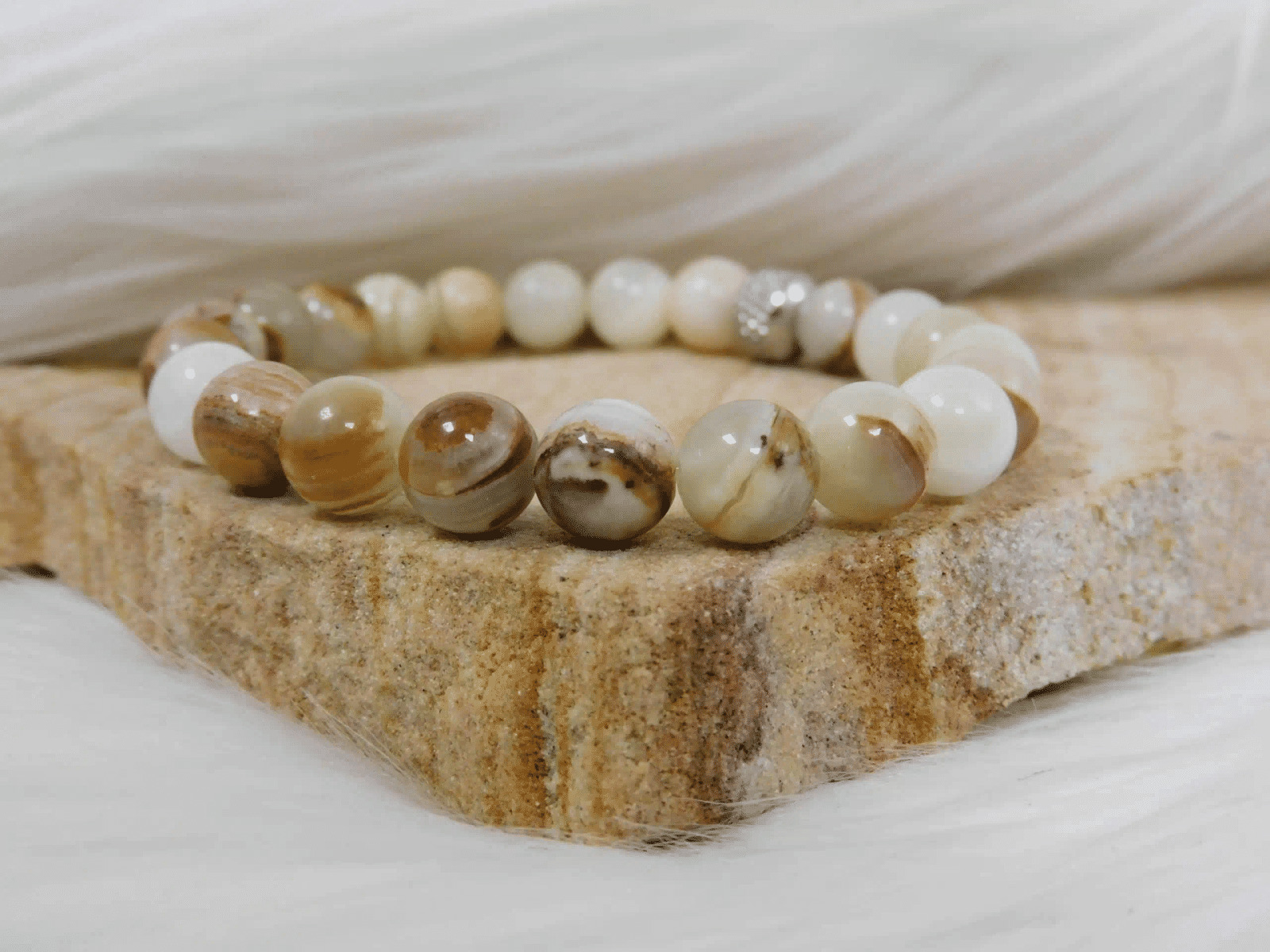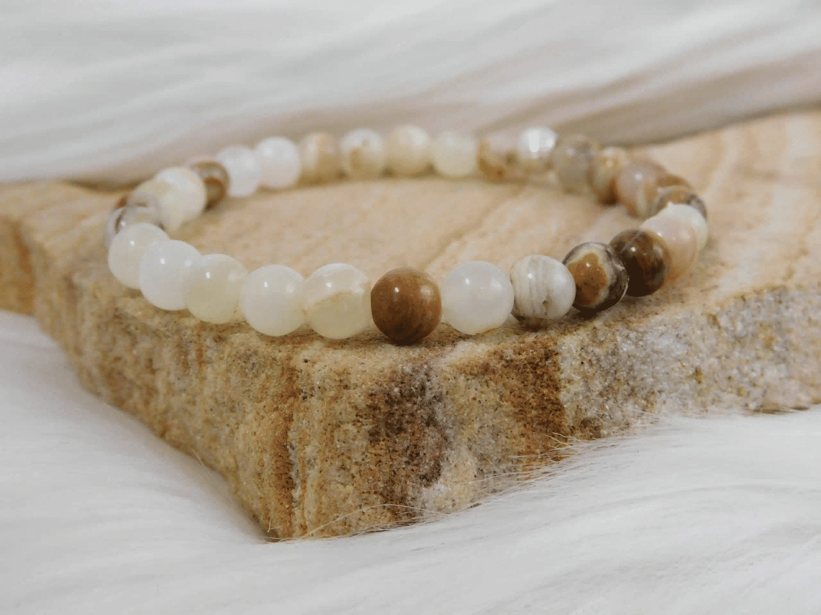Chaque bracelet en Aragonite est unique, avec des nuances naturelles qui en font un bijou intemporel et raffiné.