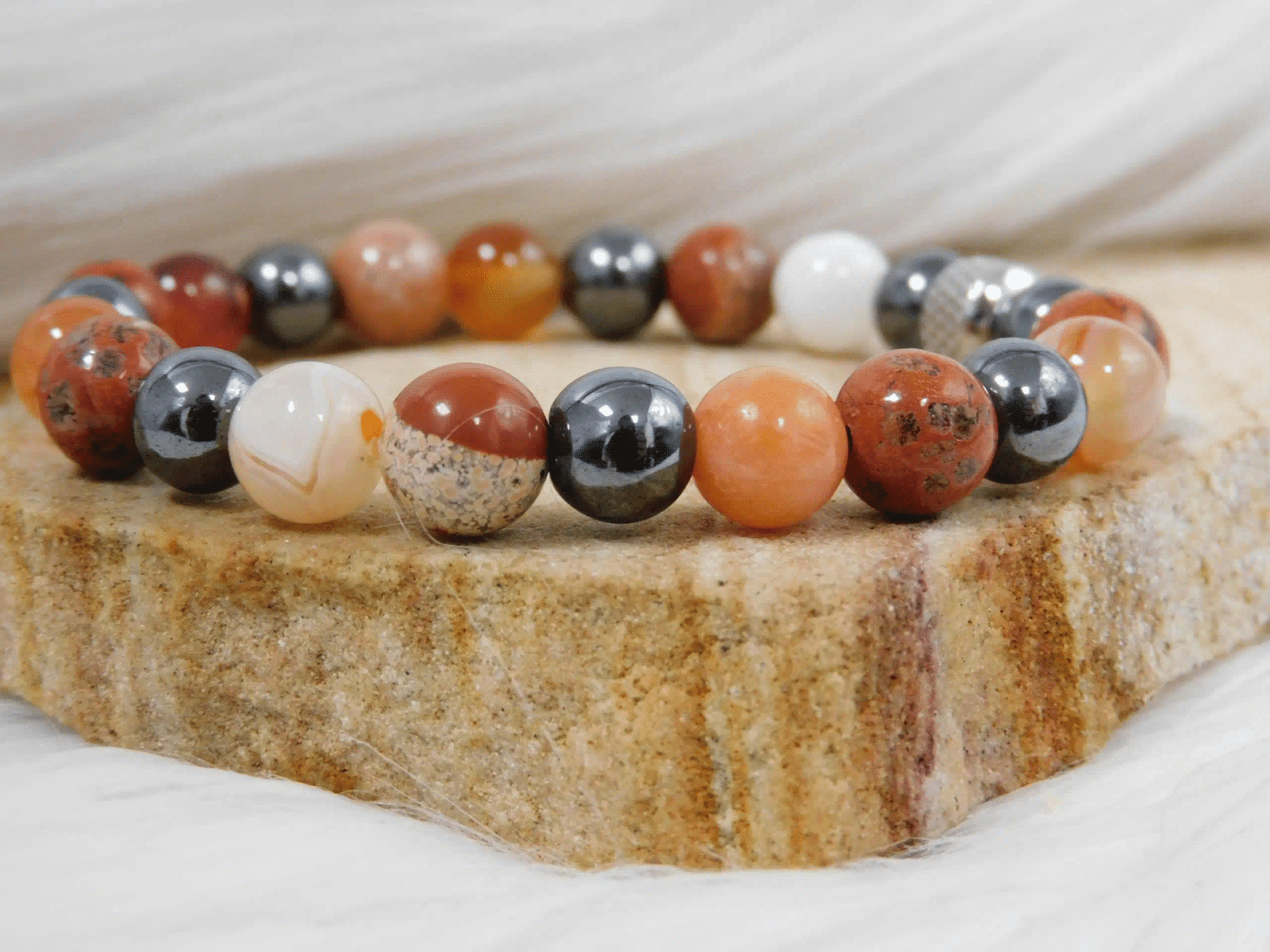 Bracelet Courage en Cornaline, Jaspe rouge et Hématite