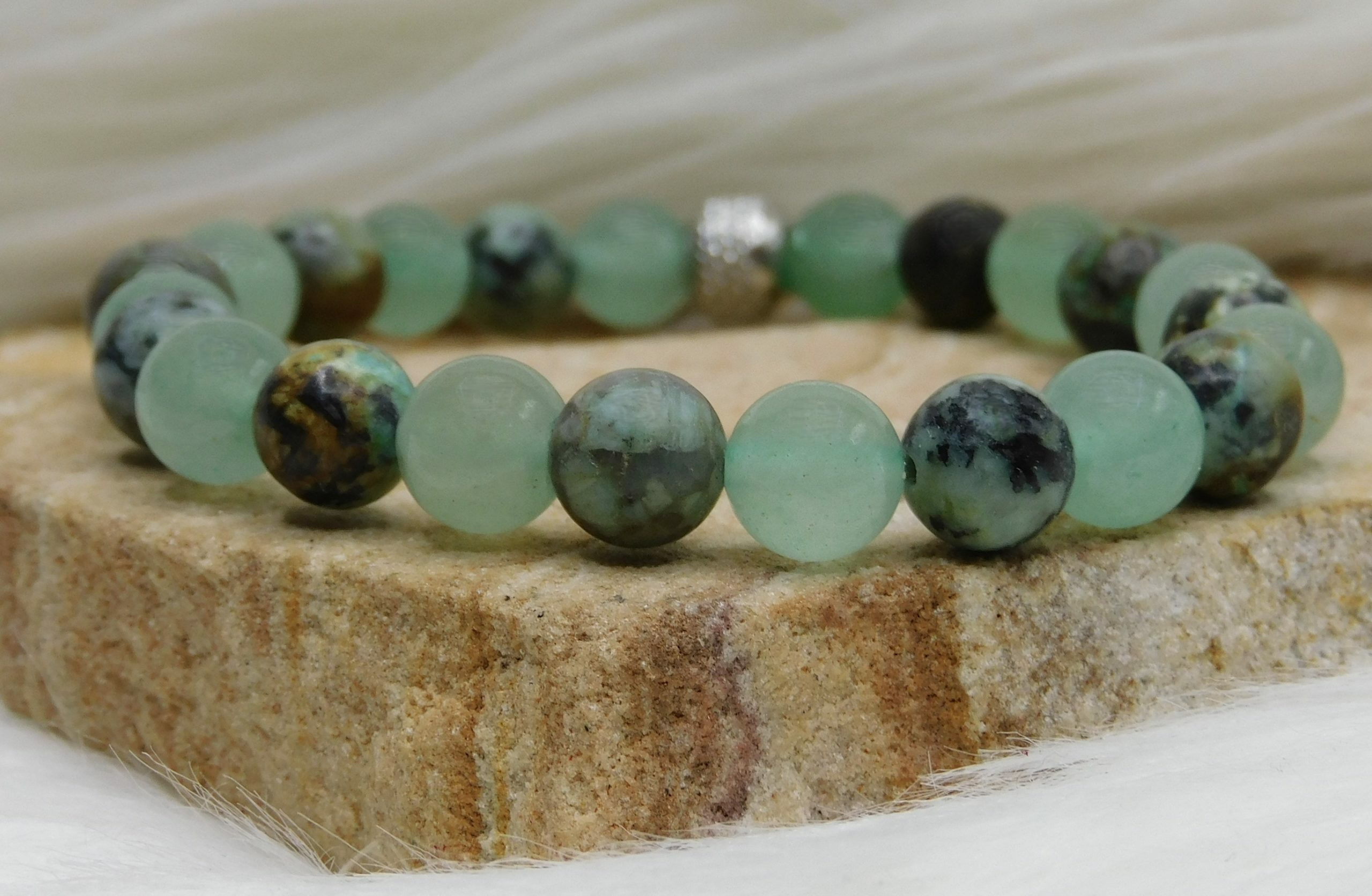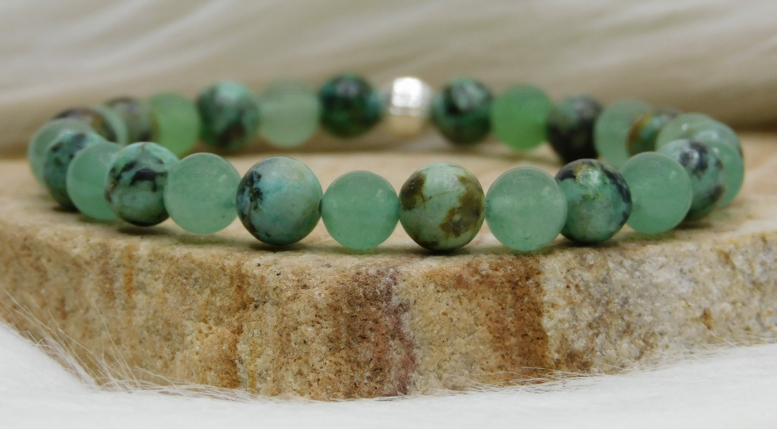 Bracelet Espoir en Aventurine Verte et Turquoise africaine : Renouveau, Sérénité et Chance