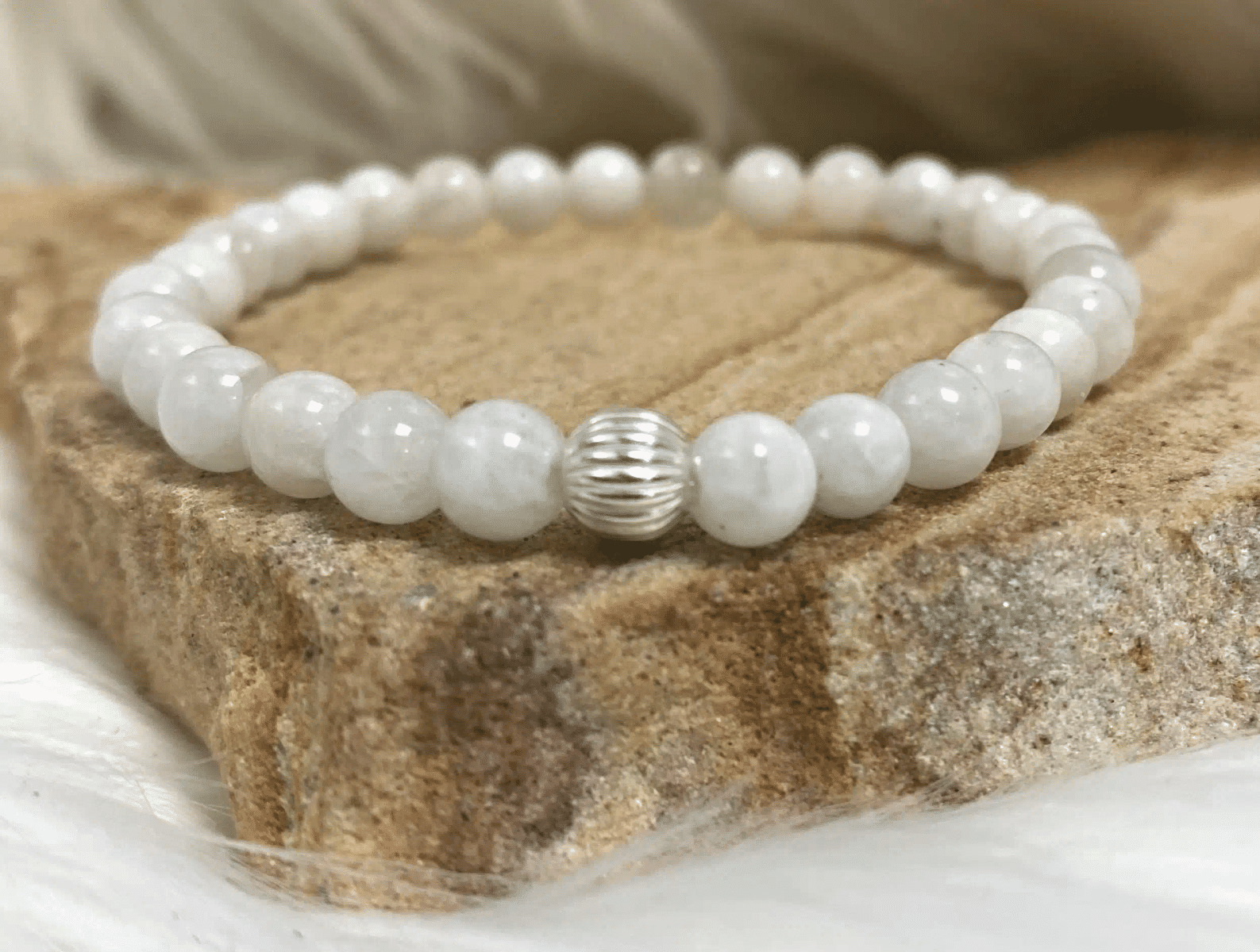 Ensuite, le bracelet en labradorite blanche se distingue par son apparence éclatante et subtile. Les reflets argentés et irisés de la labradorite blanche captent la lumière, apportant une touche de luminosité à votre poignet. Que ce soit pour une tenue décontractée ou plus élégante, ce bracelet s’adapte parfaitement à toutes les occasions. Sa polyvalence en fait un bijou idéal à porter au quotidien ou à offrir en cadeau à un être cher.