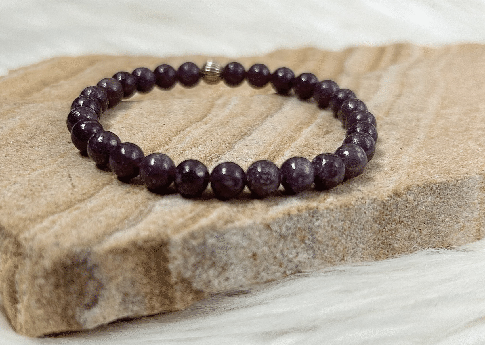 En plus de ses vertus énergétiques, le bracelet en lépidolite se distingue par son esthétique raffinée. Les teintes violettes et roses de la pierre apportent une touche de douceur à votre style. Que vous le portiez seul ou en combinaison avec d'autres bijoux, il reste un accessoire chic et discret qui s’accorde à toutes les tenues.