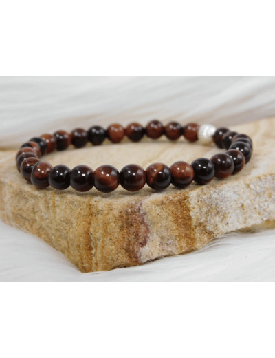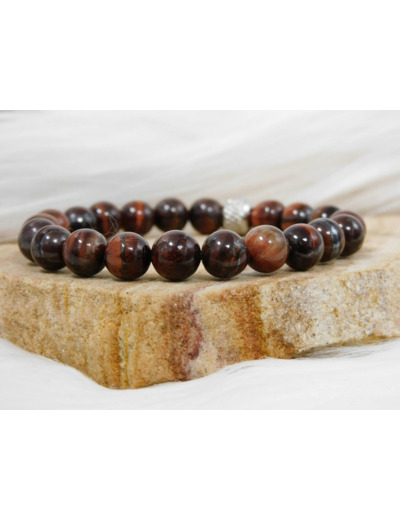 Œil de tigre de couleur rouge. En lithothérapie, Pierre du chakra de base elle stimule l'Energie de celui-ci. Recommandée pour les efforts physiques importants. Développe notre force intérieure. Pierre de courage, elle nous aidera à affronter nos peurs. Pierre de protection, elle protège des vols.