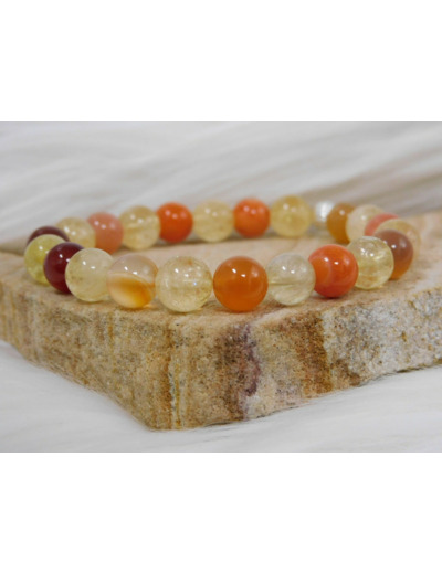 En lithothérapie, Pierre rayonnante qui permet de se sentir bien. Stimule l’intellect. Elle améliore la mémoire et la concentration. Bénéfique pour le système digestif. Elle aide à éliminer les toxines du corps. Pierre positive, protège l’aura et les champs énergétiques du corps. (citrine chauffée)