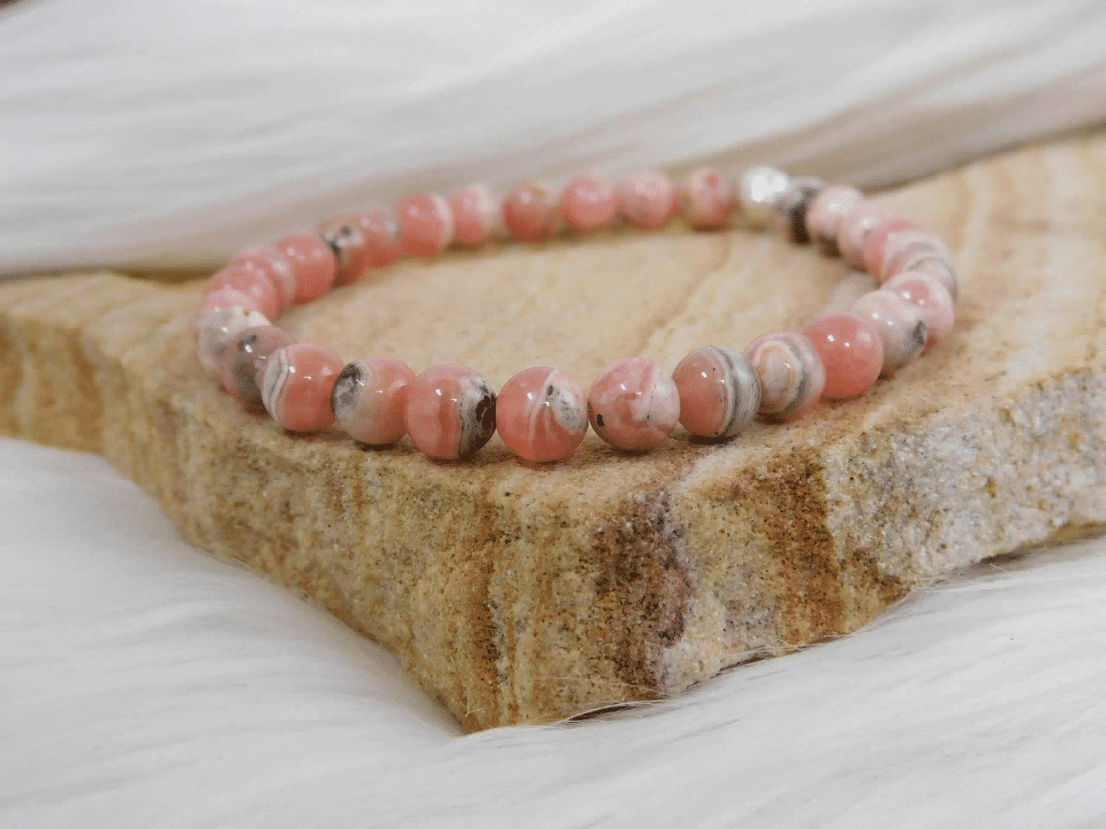 Le bracelet en rhodochrosite est bien plus qu’un simple bijou : il allie beauté naturelle et vertus bienfaisantes. Appréciée en lithothérapie pour ses propriétés apaisantes, la rhodochrosite est une pierre d’amour et de guérison émotionnelle. Son éclat rosé, parfois nuancé de blanc ou de beige, en fait un accessoire raffiné et intemporel.