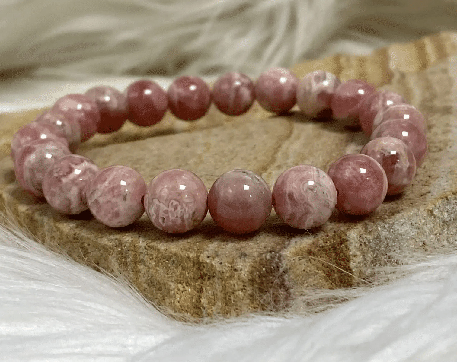 Le bracelet en rhodochrosite est bien plus qu’un simple bijou : il allie beauté naturelle et vertus bienfaisantes. Appréciée en lithothérapie pour ses propriétés apaisantes, la rhodochrosite est une pierre d’amour et de guérison émotionnelle. Son éclat rosé, parfois nuancé de blanc ou de beige, en fait un accessoire raffiné et intemporel.