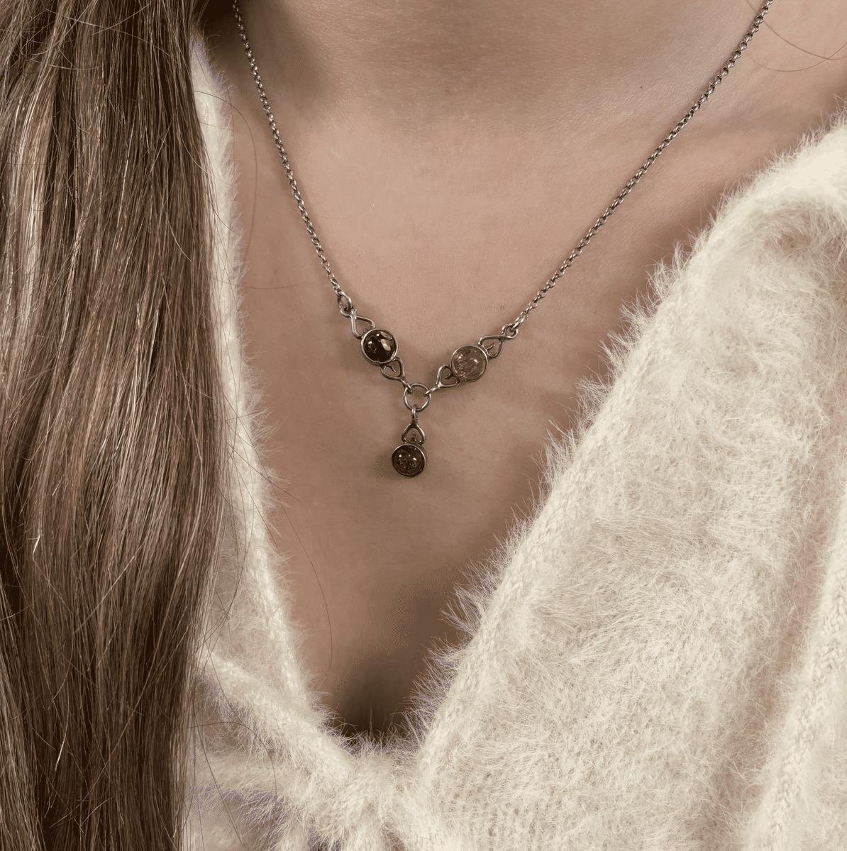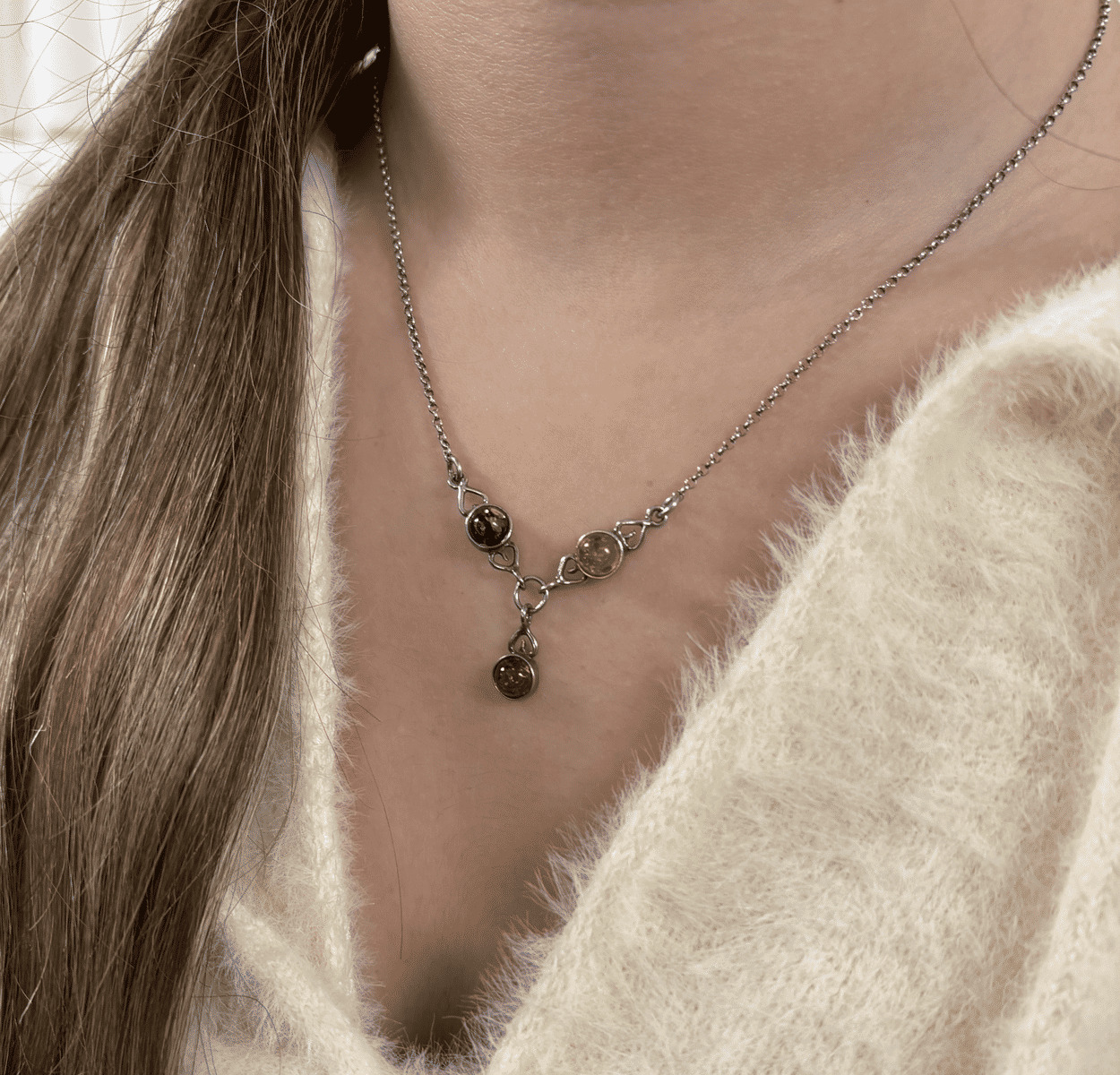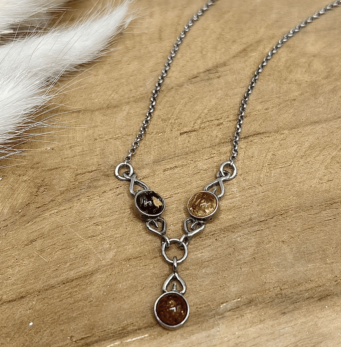 Ainsi ce collier se distingue par son pendentif en ambre naturelle, une résine fossile précieuse reconnue pour ses nuances chaudes et lumineuses, souvent associées à des propriétés apaisantes et protectrices. La pierre, polie avec soin, est mise en valeur par une monture en argent 925.
