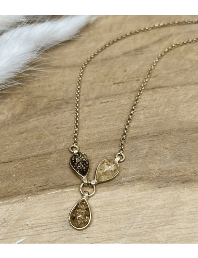 Collier Argent doré Ambre multicolore