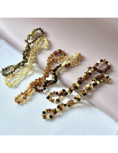 Le collier bébé ambre multicolore de plus en plus populaire pour soulager les douleurs liées aux poussées dentaires. Ces bijoux, composés de petites perles d’ambre, sont conçus pour être portés par les bébés et les jeunes enfants. Leur fermoir à clip assure une sécurité optimale.
