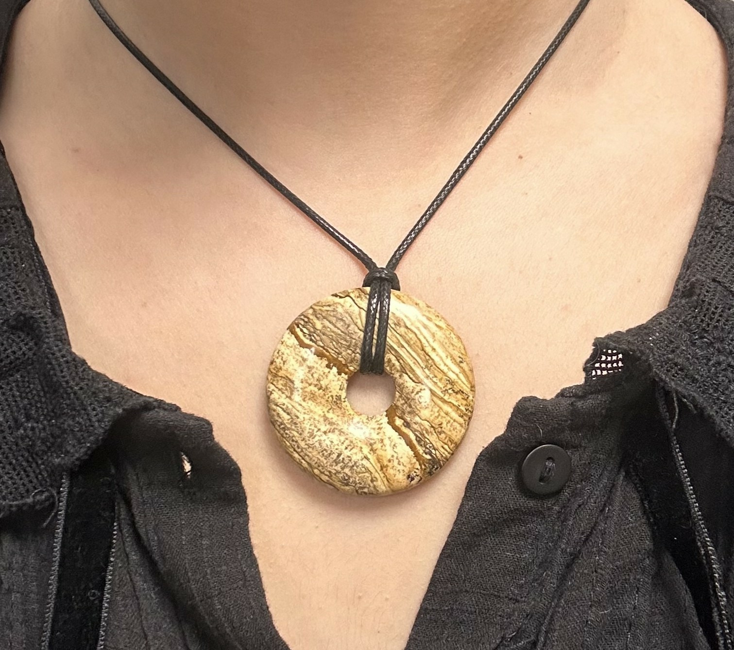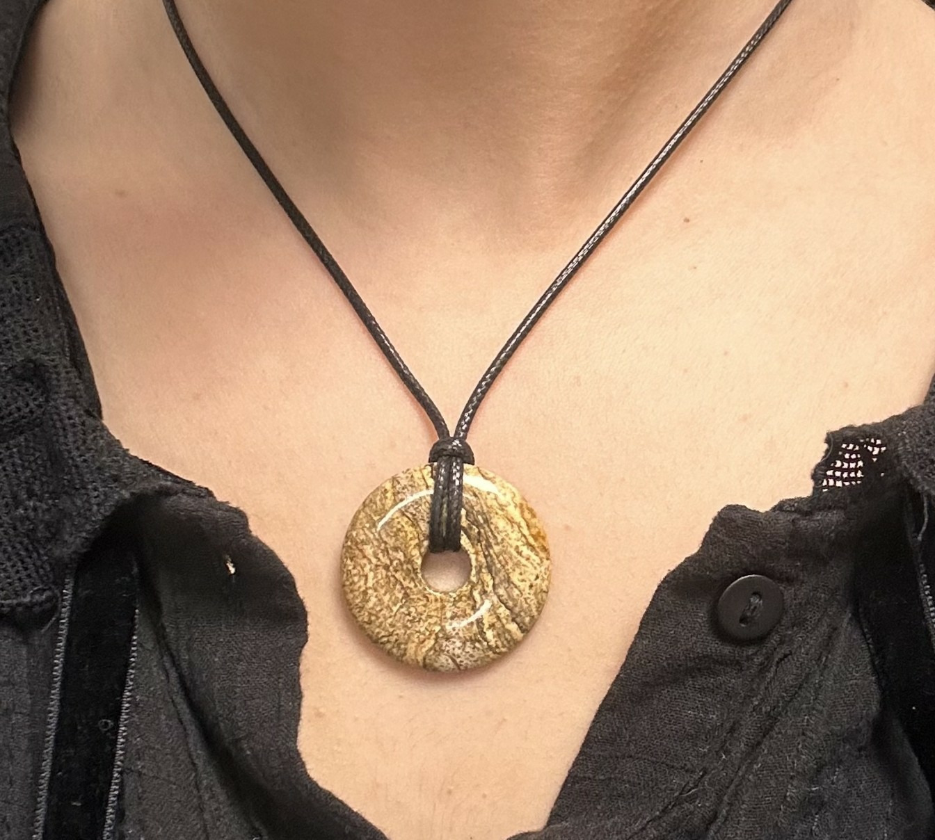 Le pendentif donut en jaspe paysage est idéal pour ceux qui souhaitent se reconnecter à la nature, développer leur créativité et avancer avec sérénité et stabilité. 🌄🌿