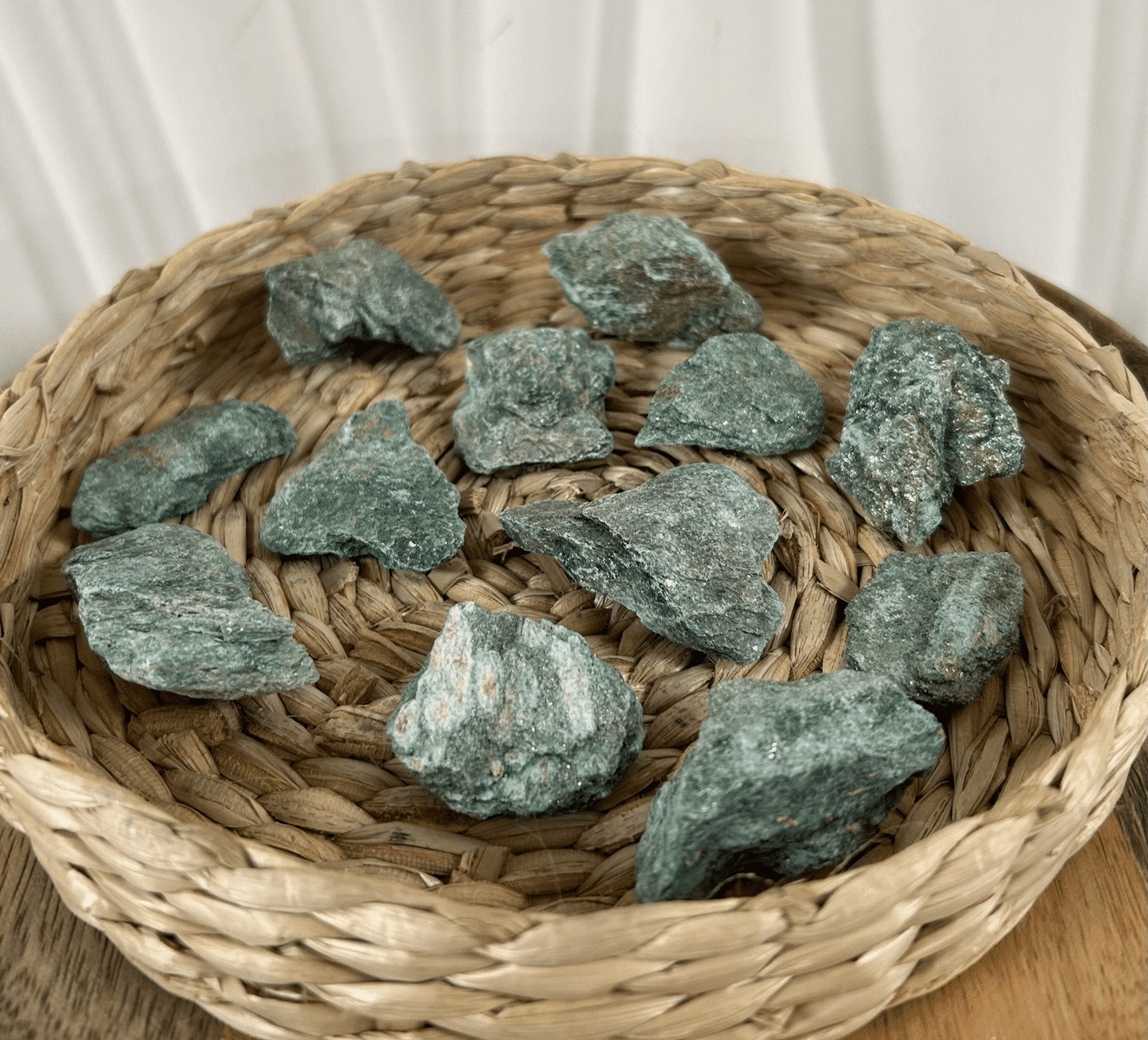 Tout d'abord La fuschite brute est une pierre naturelle aux nuances de vert profond, souvent comparée à un écrin de verdure. Sa couleur est due à la présence de chrome. Chaque pièce est unique, présentant des formes et des textures variées, témoignant de l'œuvre de la nature. La fuschite est particulièrement appréciée pour ses propriétés protectrices et apaisantes.