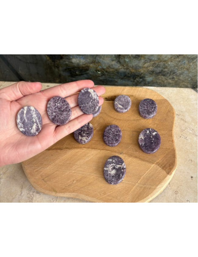 Découvrez la douceur des galets en lépidolite, une pierre naturelle aux teintes violettes reconnue pour ses puissantes propriétés apaisantes 🌿