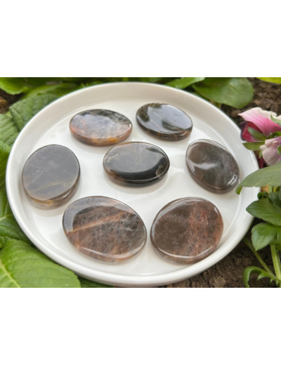 Le galet en pierre de lune noire est une pierre puissante et profonde, reconnue en lithothérapie pour ses propriétés d’ancrage, de protection émotionnelle et de connexion à l’intuition. Plus intense que la pierre de lune classique, la pierre de lune noire accompagne les périodes de transformation, d’introspection et de recentrage intérieur.
