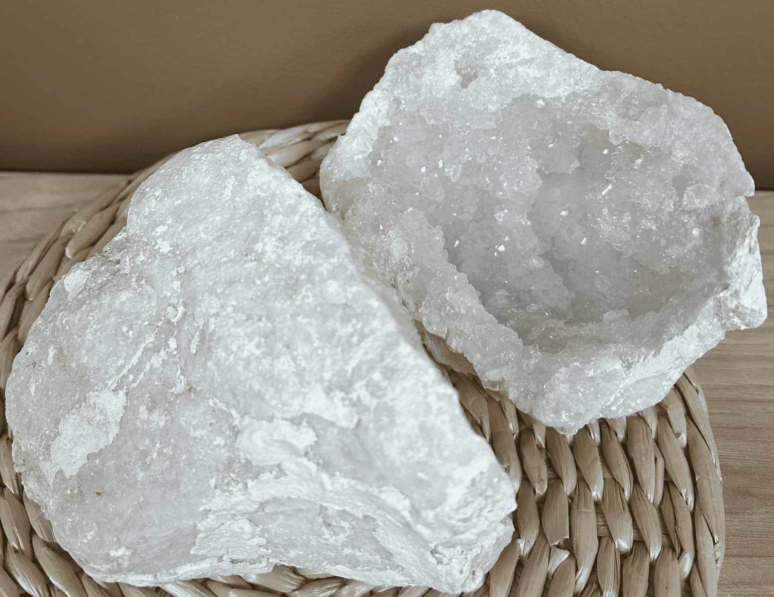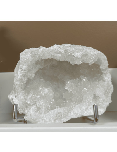 - Harmonisation de l'environnement : Placée dans une pièce, une géode de quartz contribue à équilibrer les énergies ambiantes, éliminant les vibrations négatives et favorisant un climat de sérénité.