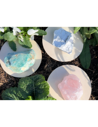 Ce trio de pierres brutes – Howlite, Quartz Rose et Amazonite – diffuse une énergie réconfortante, idéale pour retrouver la paix intérieure et apporter une vibration douce et positive dans votre maison.