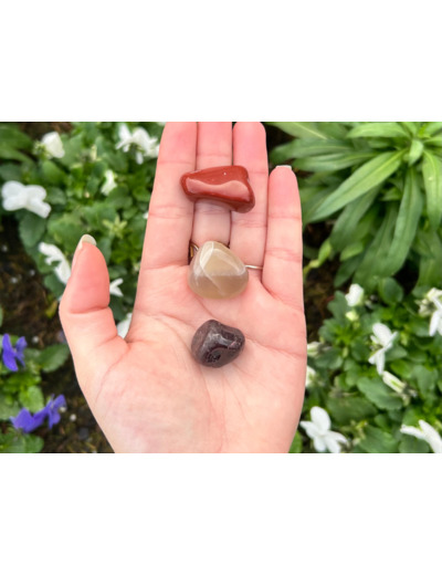 Pierre d’ancrage et de stabilité, le jaspe rouge soutient la force intérieure, la confiance et la persévérance. Il aide à s’enraciner dans le corps. A se sentir sécurisé et à vivre pleinement ses émotions et ses désirs avec assurance.