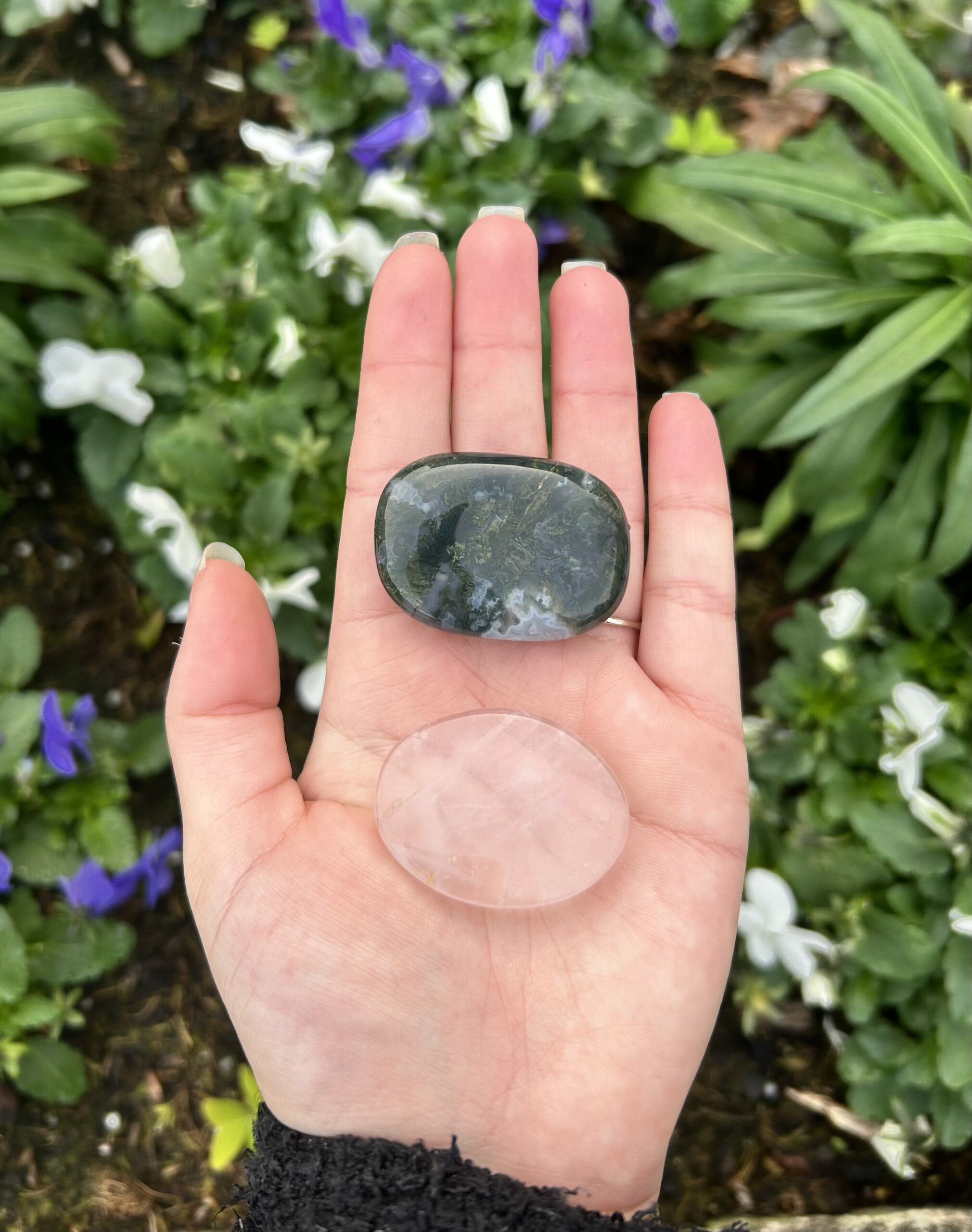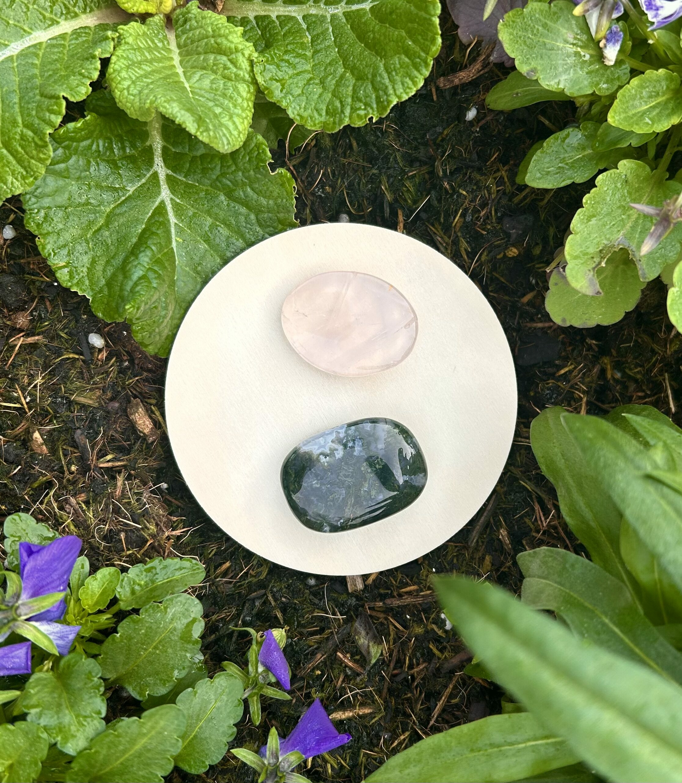 Pierre douce et rassurante, l’agate mousse est associée à la féminité, à la nature et à la croissance. Elle aide à apaiser les angoisses, à stabiliser les émotions et à renforcer le sentiment de sécurité intérieure. Très appréciée pendant la grossesse, elle accompagne les changements en douceur et favorise l’ancrage et la confiance.