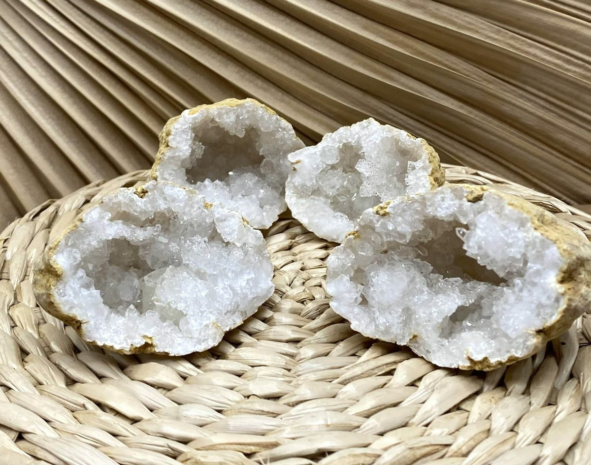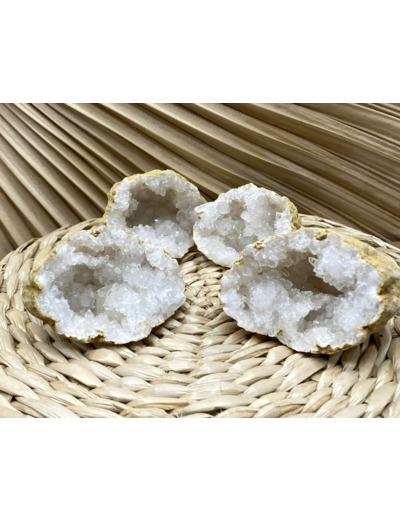 Déposez vos pierres à l'intérieur de la géode, laissez vos pierres et cristaux profiter des énergies du cristal de roche. La géode à pour propriété de recharger les pierres en chassant les énergies négatives contenues dans la pierre.