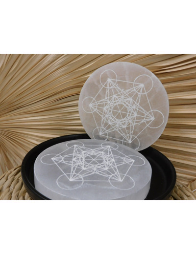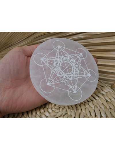 Découvrez le palet Métatron en sélénite (taille moyenne), un puissant outil spirituel conçu pour purifier, équilibrer et amplifier les énergies. Gravé du symbole sacré du Cube de Métatron, ce palet associe la pureté énergétique de la sélénite à la géométrie sacrée, créant une pièce unique idéale pour vos pratiques spirituelles et méditatives. Sa taille moyenne (environ 10 à 12 cm) est parfaite pour une utilisation polyvalente, alliant esthétisme et bienfaits spirituels.