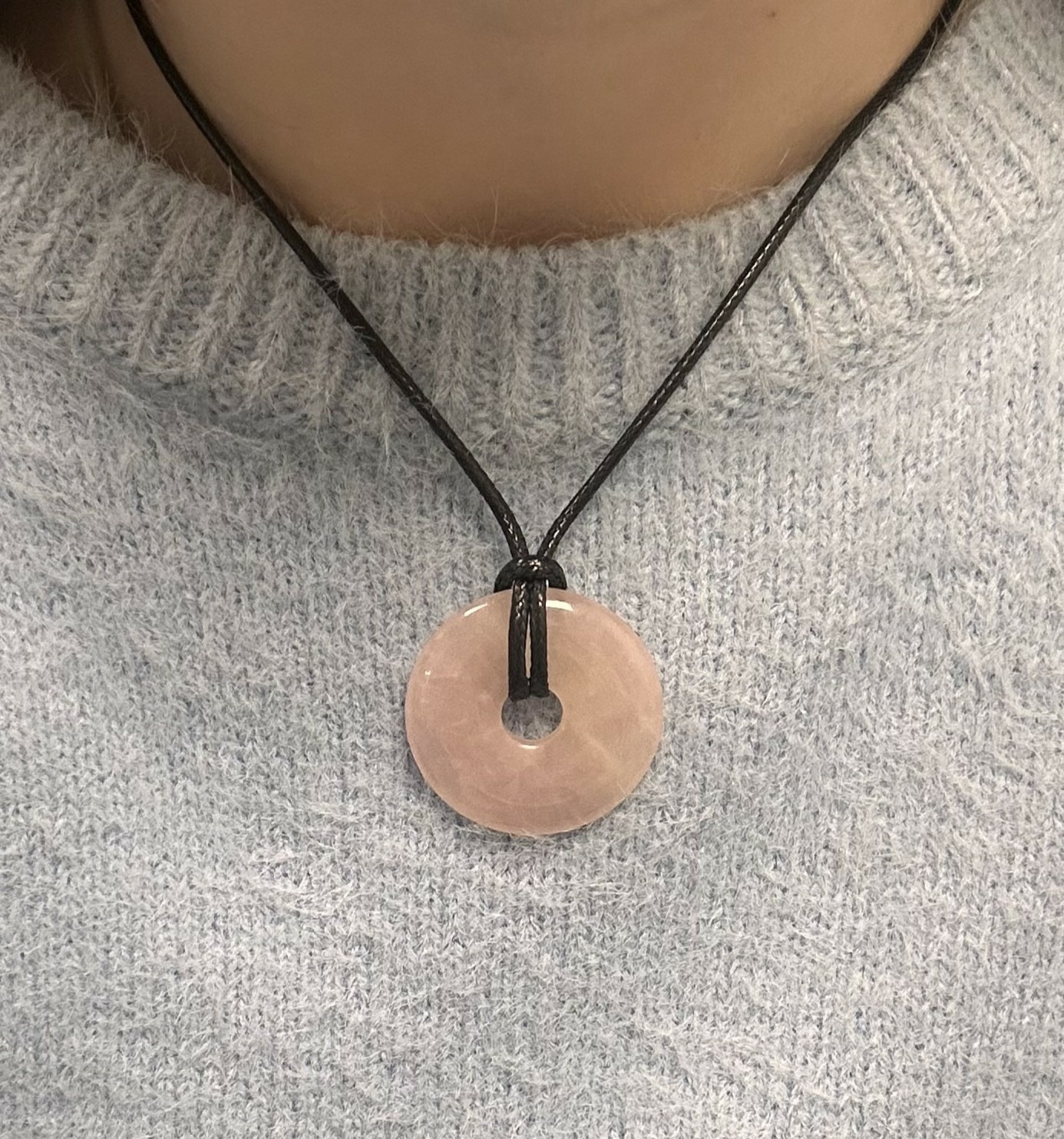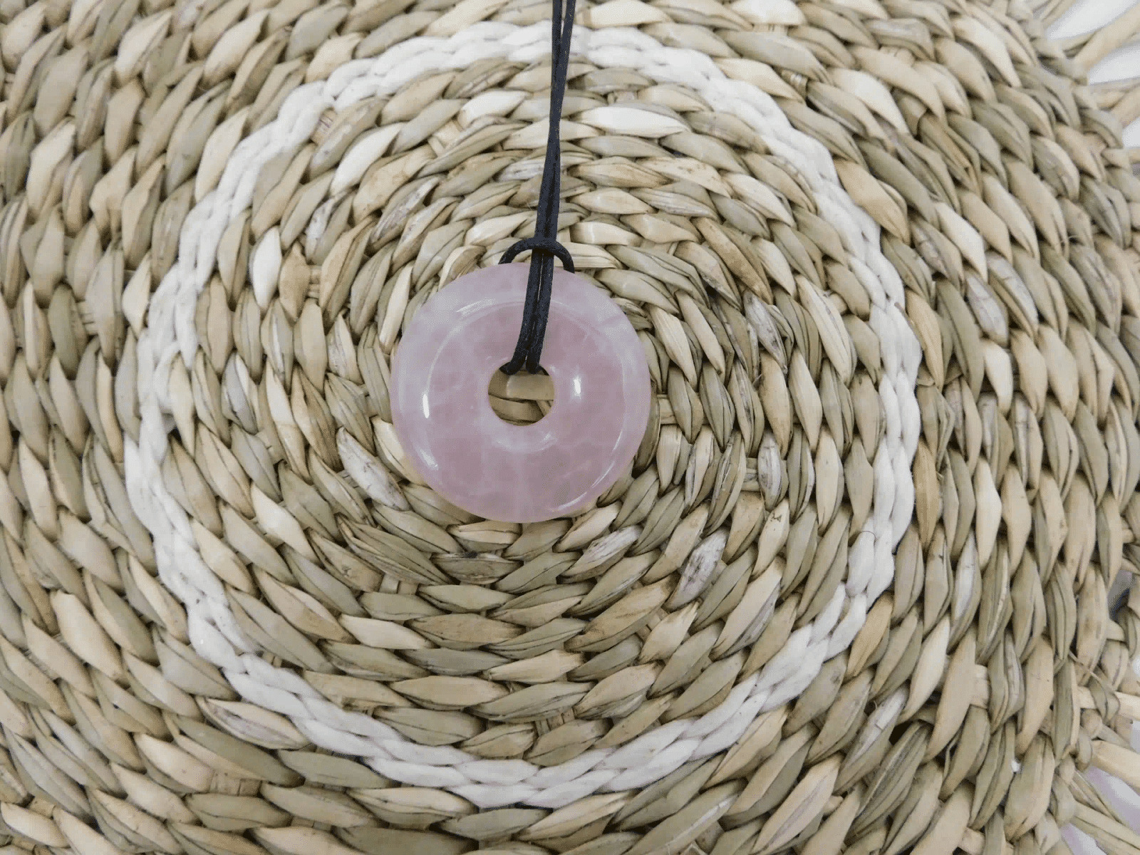 Portez l’énergie de l’amour au quotidien avec ce pendentif donut en quartz rose, symbole de tendresse, de paix intérieure et d'amour inconditionnelle. Sa forme ronde, appelée "donut" ou "pi chinois", représente l’harmonie, la protection et le cycle infini de la vie. Sculpté à partir de quartz rose naturel, ce bijou énergétique diffuse des vibrations douces et réconfortantes.