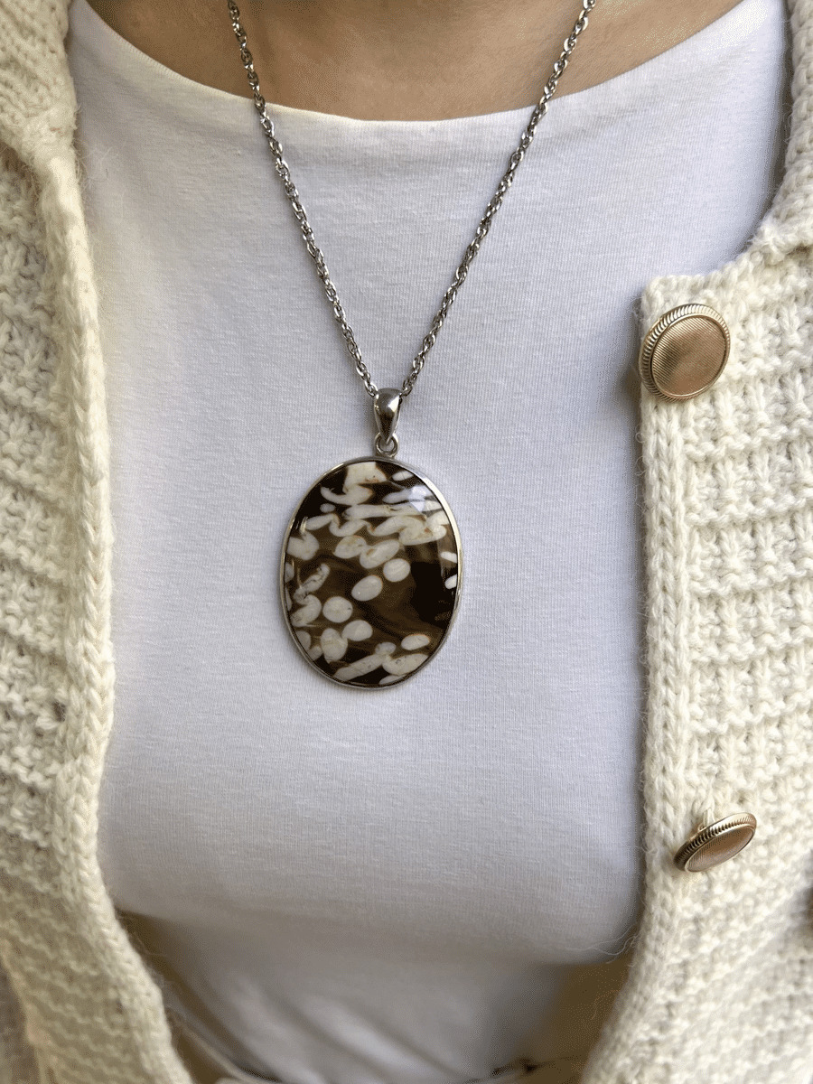 Le pendentif en jaspe cappuccino est un bijou polyvalent qui peut être porté en toute occasion. Que vous souhaitiez ajouter une note naturelle à votre tenue quotidienne ou apporter une touche d'élégance à un look plus formel, ce pendentif s’adapte parfaitement à tous les styles. Grâce à ses tons neutres et chauds, il se marie facilement avec d'autres accessoires en argent ou en pierres naturelles.