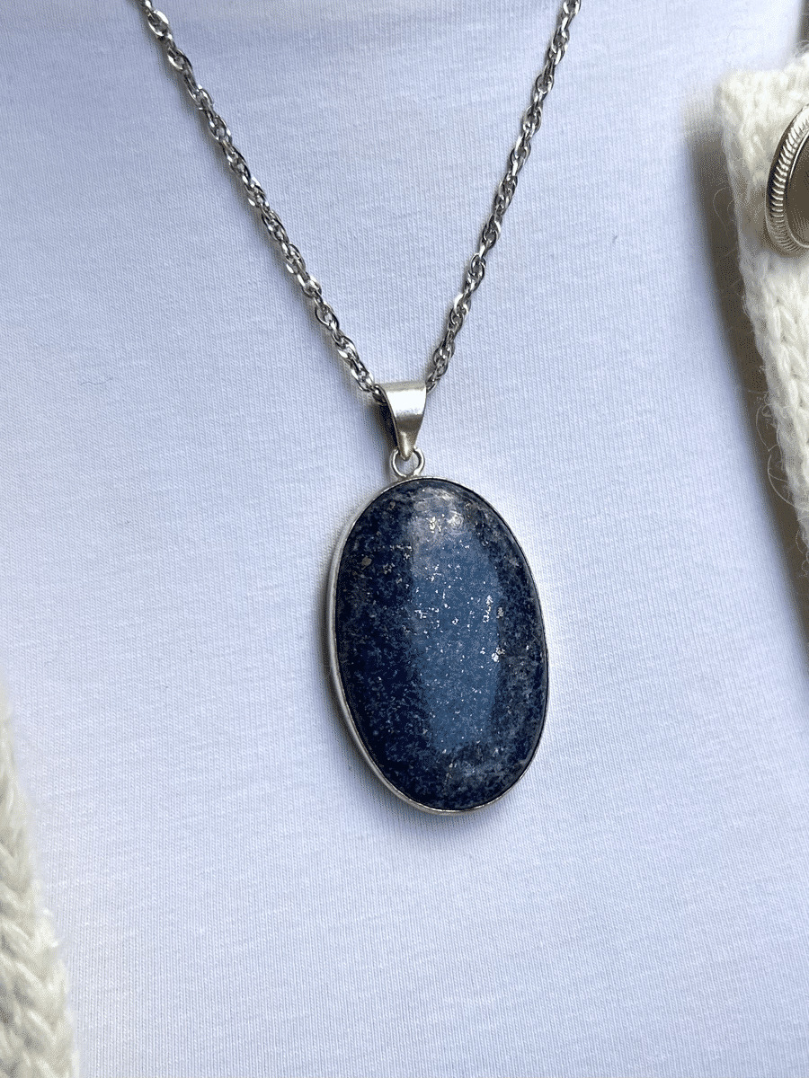 Le pendentif en Lapis Lazuli est un bijou d’une beauté saisissante, alliant la profondeur du bleu royal à la finesse de l’argent. Le Lapis Lazuli, reconnue pour ses reflets dorés est idéal pour celles et ceux qui cherchent à porter un bijou raffiné tout en profitant de puissantes énergies protectrices et équilibrantes. Ce pendentif incarne à la fois élégance et bien-être. Il est parfait pour sublimer votre style tout en harmonisant votre esprit.