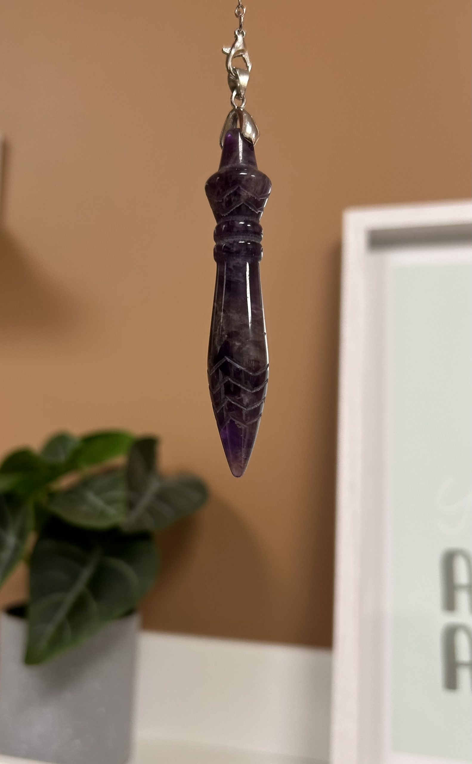 Le pendule Thot en améthyste est un outil de radiesthésie très apprécié pour sa précision, sa douceur vibratoire et ses puissantes vertus spirituelles. Pierre de sagesse, d’intuition et de protection, l’améthyste élève le taux vibratoire, purifie l’énergie et facilite la connexion aux plans subtils. Ce pendule est idéal pour la divination, les soins énergétiques, les recherches intuitives ou la méditation.