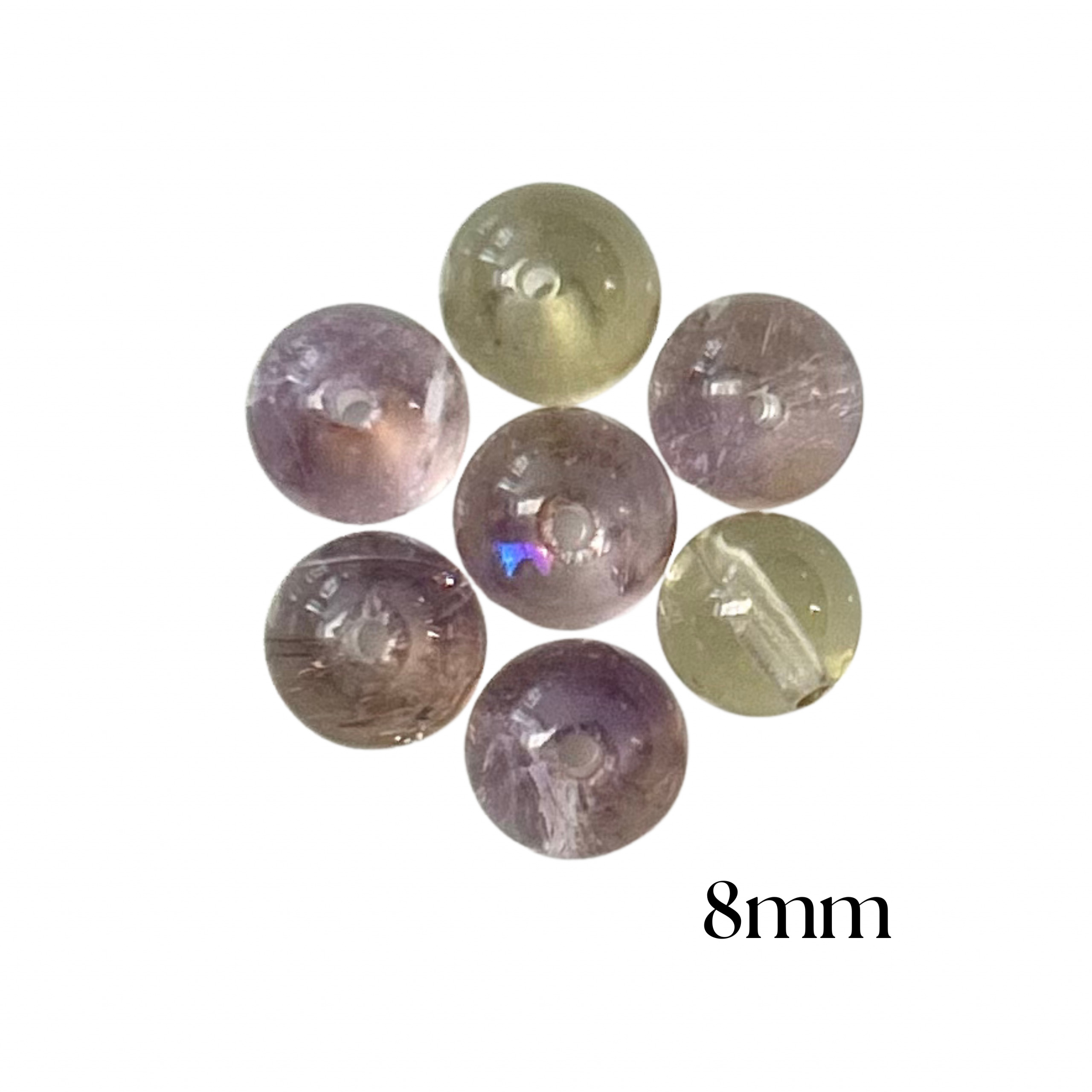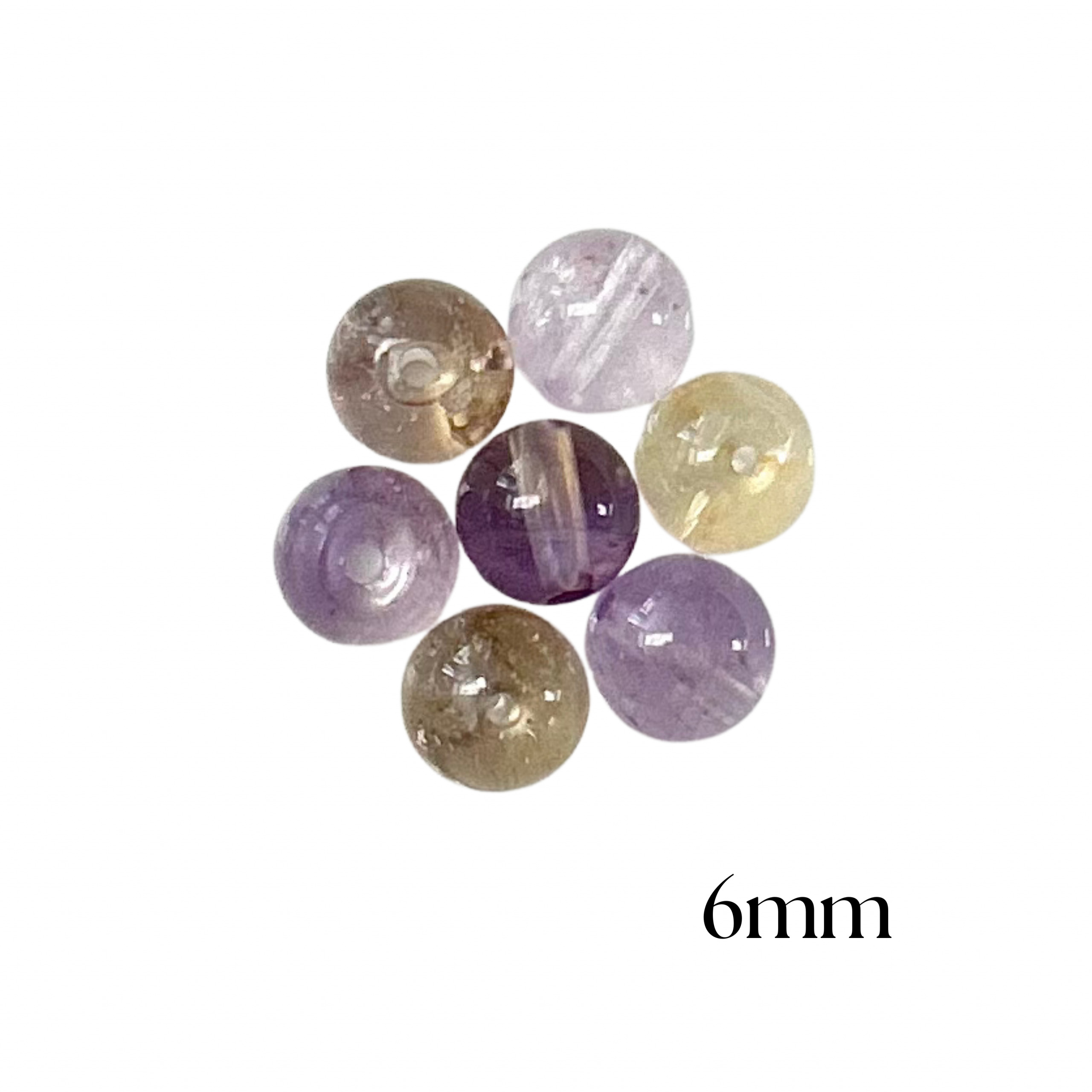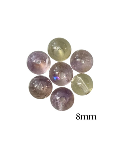 Ajoute à tes créations une énergie unique mêlant sérénité et vitalité grâce à nos perles en amétrine naturelle 8 mm ou 6mm. Cette pierre rare combine les qualités de l’améthyste (violet) et de la citrine (jaune doré), formant une pierre d’équilibre et de transformation douce.