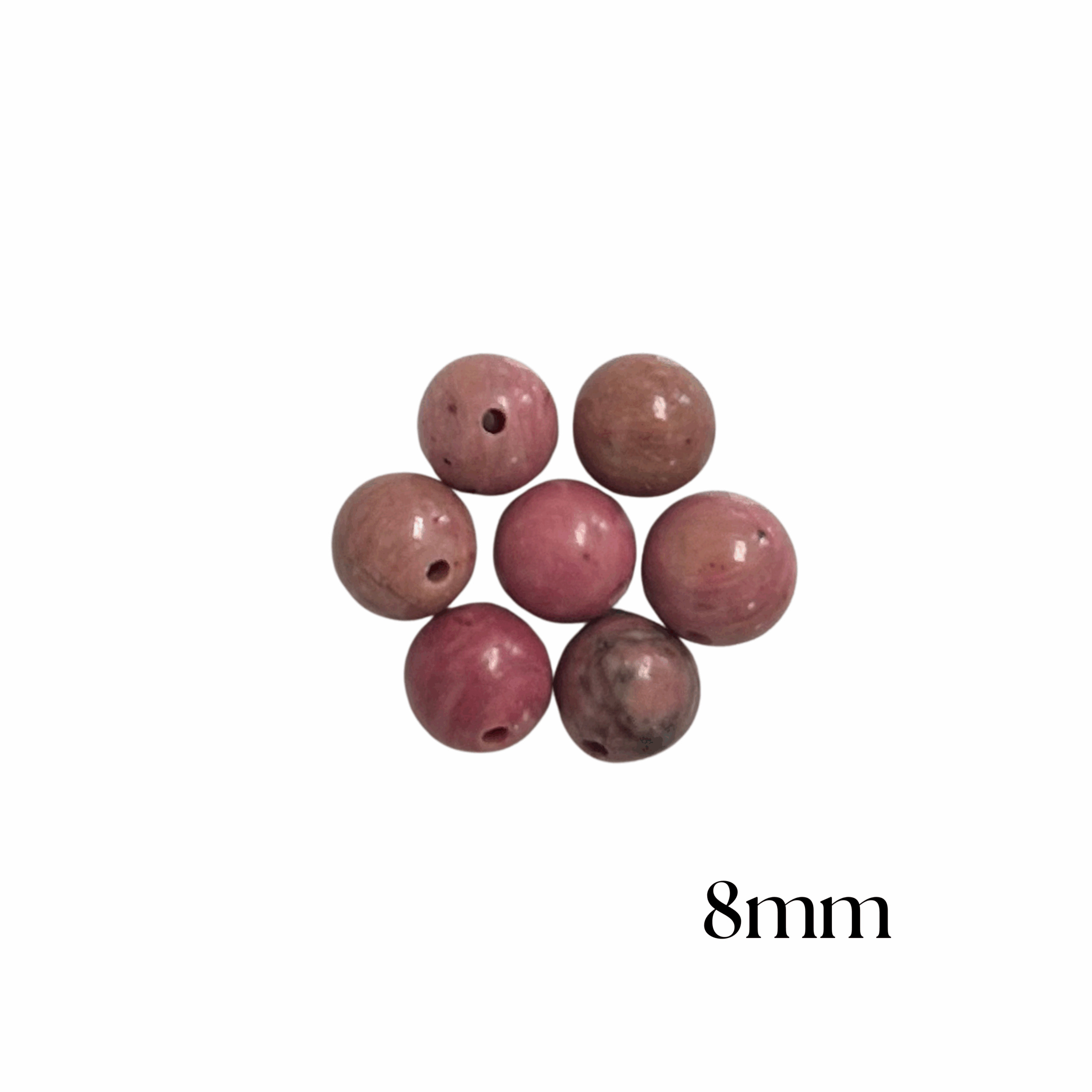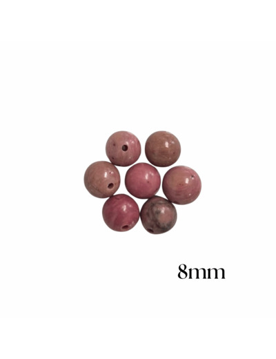 Disponibles en 6 mm, 8 mm et 10 mm, elles séduisent par leurs nuances de rose tendre à rose soutenu, souvent ornées de délicates veines noires caractéristiques. Chaque perle est unique et révèle la beauté apaisante de cette pierre au charme naturel.