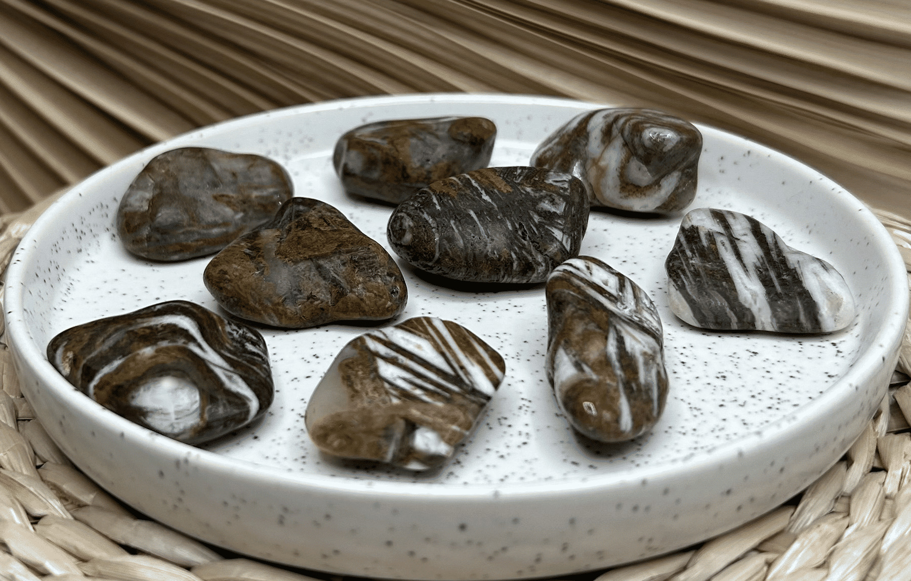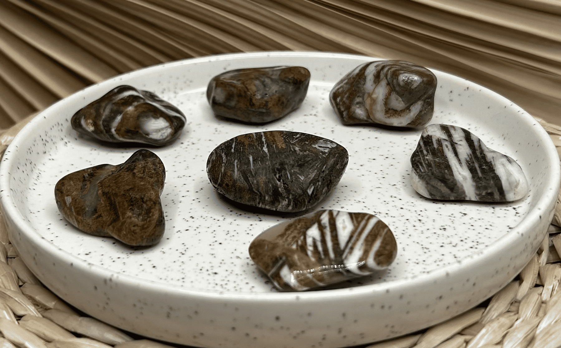 - Ancrage et stabilité: Le jaspe chocolat reconnu pour ses puissantes propriétés d'ancrage. Il aide à se sentir plus stable et enraciné, favorisant ainsi un sentiment de sécurité et de confiance en soi.