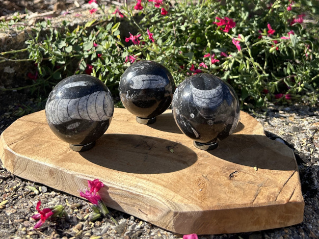 Chaque sphĂšre en OrthocĂ©ras est unique, avec ses empreintes fossiles naturelles qui racontent lâhistoire de la vie marine ancienne.