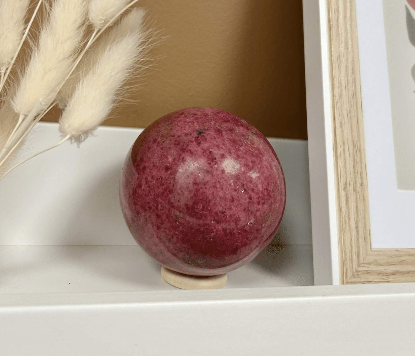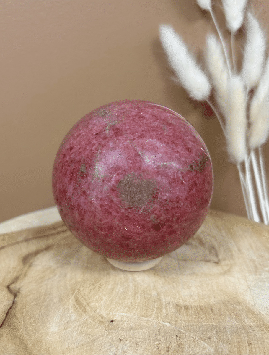 La rhodonite rose est une pierre puissante pour ceux qui cherchent à surmonter des blessures émotionnelles ou des conflits intérieurs. Elle aide à dissiper les énergies négatives et encourage la compassion; tant envers soi-même qu’envers les autres. En travaillant avec une sphère en rhodonite rose, vous renforcez votre amour propre tout en développant une capacité à pardonner et à guérir.
